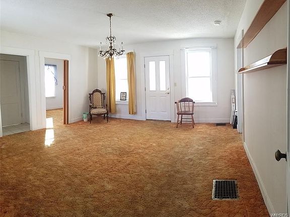 1850's Farmhouse in Elba school district. 3 possible 4 bedrooms, large Living room with wood burning fireplace, formal dining room, country kitchen with walk-in pantry + first-floor laundry. Back patio overlooking serene setting plus enclosed side porch & central air. Just decorate to taste. Total tear off of roof 10/19.
