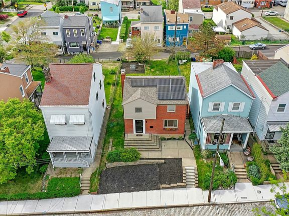 Located on the border of Lawrenceville and Stanton Heights, this property combines the tranquility of a quiet neighborhood with the convenience of urban living. It's close to Butler St., known for its cafes, galleries, and boutique shops. This brick home sits on a double lot, providing a ton of outdoor space, including a new deck and concrete patio added in 2023; off-street parking and an integral garage. The installation of solar panels (2017) and a tankless water heater contribute to the home's energy efficiency. An electric car charger has also been installed, promoting sustainable living practices. Both the roof and siding were replaced in 2017. New Windows, Interior, and Exterior doors in 2023. The property includes updated bathrooms (lower level in 2022, upper level in 2020) with modern fixtures. The remodeled kitchen (2021) features quartz countertops, new appliances and fixtures. Hardwood floors throughout the home are complemented by updated lighting fixtures.