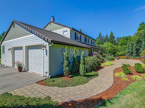Custom remodeled 2 Story nestled on 5+ private acres! Recent family room addition with 13 x 28 covered deck. Several amenities both in & out! Sought after layout offering new carpeting, remodeled guest & master baths, recently painted interior/exterior, spacious kitchen w/pantries & breakfast nook! Formal dining, living room w/wood stove & family room. Beautifully landscaped grounds w/oversize paver patio, water feature & garden space! 28 x 36 shop w/heated 16x 36 finished upper level space with custom bar. Estate provides a 5 car garage, and a 12 x 37 lean to for boat/RV storage. Easy commute to I-5, I-205, shopping, schools and more!
