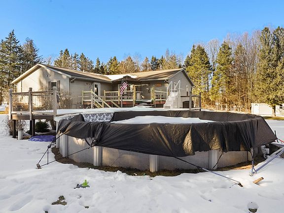 Spacious ranch home with a pool on just over two acres just west of Cadillac and right down the road from Forest View Elementary School! This home has room for everyone and includes an in-law suite. Homestead property is surrounded by lots of mature pines, providing plenty of peace and privacy. With over 3,200 square feet of living space, five bedrooms and four bathrooms, finished walkout basement, and a three-car attached garage, you'll love the quiet a feeling of living on the outskirts of town. Large kitchen with stainless steel appliances, eat-in peninsula for additional seating and lots of counter and cupboard space. Kitchen is open to the dining and living room areas, which creates a great space for entertaining. Main level has three bedrooms including a generously sized in-law suite complete with separate living room, full bathroom and walk-in closet. First floor has a home office as well. Lower level has two more bedrooms with egress windows, another full bathroom and two nice-sized spaces for a family room and game room or exercise equipment. Other convenient features include a main floor laundry room, large mud room, and French doors off the dining room for easy access to the deck/pool area. Many recent updates include new laminate flooring, paint, trim, appliances, furnace, central A/C, and water heater. All this conveniently and centrally located on an easy access blacktop road, making it fun to enjoy all that Northern Michigan has to offer: 10-minute drive to Caberfae Peaks for skiing and golf or 10-minute drive to Lake Mitchell for swimming and water sports!