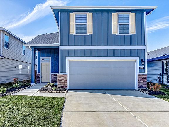 Welcome to this stunning Craftsman style home offering a breathtaking lake view and modern conveniences. The heart of the home boasts a fully equipped kitchen with 42in cabinets and top-of-the-line stainless steel appliances, including a refrigerator, washer, and dryer. The social areas feature beautiful grey hardwood-looking tile, creating an elegant and cohesive flow. The primary bedroom is conveniently located on the main floor, offering a spacious bathroom and a large walk-in closet. Upstairs, find a huge game room and three additional bedrooms, all fitted with ceiling fans and blinds. This home is designed for efficiency with a tankless water heater and a sprinkler system. Enjoy picturesque sunsets from your covered patio overlooking the serene lake. An elegant mud area greets you upon entry through the garage. Located in the desirable KatyISD school district and close to grocery stores, Grand Pkwy, and I-10, this home combines luxury with convenience. Don't miss this opportunity!