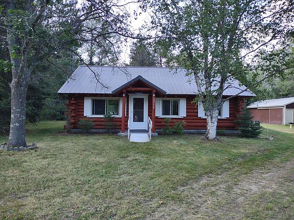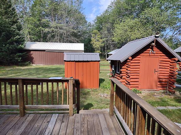 Adorable 2 bed + loft, Full Log cabin that sits on 10 acres. Enjoy the little pond from your 16 X 12 deck. Great hunting property or hunt across the road on state land. Ride right from the cabin to the trails. Tons of storage for all your toys with Garage & Pole barn, both have electric.
