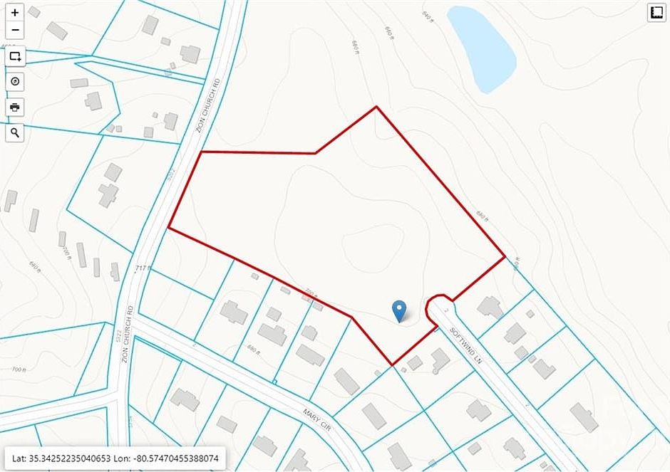 Just over 8 acres for your private estate, or possibly a minor subdivision. Road frontage on Zion Church as well as Softwind Lane in the cul-de-sac! See attached soils analysis from Larry Thompson for septic suitability report, and check with Cabarrus County for requirements for possible subdivision. City water is close by, will require septic systems. Great location, minutes from Hwy 49. May be purchased separately, or together with 2 additional lots that are listed separately for sale MLS #3939454 and MLS #3939456.
