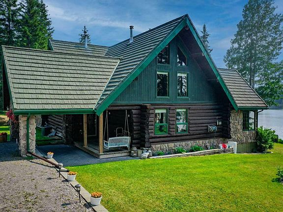 Welcome to paradise! Nestled amidst the breathtaking scenery of Millers Lake, this magnificent acreage showcases a stunning 5-bedroom, 3.5-bathroom, 2-storey log home on 2.08 acres of lake-front property, offering a luxurious retreat unlike any other. Boasting unparalleled craftsmanship and amenities, this property is truly one of a kind. As you step onto the meticulously maintained property, you'll be greeted by the sight of a double detached 28 x 40 heated garage with lean-to, a charming cabin complete with a wood stove, two additional storage buildings, and an outdoor cooking/entertaining area adding functionality, character and charm to this water-front setting. Upon entering the main residence, you'll be captivated by the grandeur of the family-sized living room, illuminated by large windows and crowned by a high vaulted ceiling. A stone-walled gas fireplace, as well as a newly installed high efficiency wood-stove sets a cozy ambiance while providing a cost-efficient heat source for this well insulated log home. Inviting French doors beckon you into the bright sunroom, offering a serene space to unwind. Give way to tranquility within the spacious master suite, featuring an impressive ensuite complete with a large enclosed shower, double sinks, and a walk-in closet. The separate bath area boasts a claw-foot tub, providing a serene spot to soak while admiring the spectacular lake views. Step outside onto the expansive deck equipped with a gas BBQ hook up, and gazebo providing the perfect spot to immerse yourself in the beauty of nature. The new dream kitchen features custom cabinets with beautiful quartz counter tops and all stainless-steel appliances. There is a huge pantry that ensures ample storage space and patio doors that lead to the deck, offering panoramic views of the lake – making this a phenomenal place for dining and entertaining. The main floor is rounded out with a large office space and a main-floor laundry room. Upstairs, discover a huge bedroom with its own outdoor access, along with a loft area boasting two additional bedrooms, a newly installed bathroom and a spacious rec room featuring cork flooring. Venture down to the basement where you'll find another large bedroom, a full bathroom and added storage space. Whether hosting gatherings indoors or out, this home is designed for entertaining, with a spacious dining area and an incredible patio featuring an additional gazebo, outdoor oven, fire pit, and a portable dock allowing easy lake access. Additional features include outbuildings, ample storage space, air conditioning, in-floor heating, and countless extras to enhance your living experience. This is an extremely rare opportunity to experience the epitome of lakeside luxury living - your personal paradise awaits.