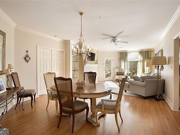 A main-level corner unit in the sought-after, gated community of Brooke Ridge, this residence is a rare opportunity to enjoy privacy and convenience just minutes from the shopping, dining, and charm of Dunwoody Village. Thoughtfully designed, the home offers 2 bedrooms, 2 full bathrooms, and a spacious living and dining area that is both functional and inviting. Step through your private entry into a welcoming living room featuring a cozy gas fireplace and access to an expansive private deck, perfect for relaxing or entertaining. The open living and dining area provides an ideal setting for hosting friends and family. The chef's kitchen is well-appointed with a gas cooktop, abundant cabinetry and storage, tile backsplash, and a convenient breakfast bar. A desirable split-bedroom floor plan ensures privacy for all. The guest suite features a full bath and closet, while the oversized owner's retreat is a true sanctuary, complete with its own private deck, generous closet space, and a spa-like bathroom with walk-in tile shower, soaking tub, and dual vanities. Additional highlights include hardwood floors throughout, a spacious laundry room, and a well-maintained, move-in-ready condition. Residents of Brooke Ridge enjoy resort-style amenities, including a community pool, tennis courts, and pickleball, all within a beautifully landscaped, gated setting. A rare blend of privacy, comfort, and convenience, this home is a standout offering in one of Dunwoody's most desirable communities.