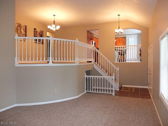 Outstanding 4 bedroom, 2.5 bath split level on 2 acres! Open floor plan offers 2 story great room with large picture windows, formal dining room and remodeled kitchen with stainless steel oven, range, dishwasher & microwave, center island with breakfast bar, tile floor, pantry and tile backsplash. Wonderful master suite with walk-in closet and private full bath with corner shower and tile floor. Bedroom 2 has double closets and bedroom 3 has a large closet too. Large full bath has been completely updated with double sink vanity and tile floor. Walkout lower level has family room with fireplace, bedroom 4 with double closets and completely updated half bath with tile floor. 2 car attached garage, clean, unfinished basement provides plenty of storage and new flooring throughout the entire home! Awesome deck off of the kitchen overlooks the treed 2 acre lot. Perfect setting for this updated and remodeled split level. A must see!