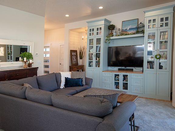 1-208-339-2229 Gorgeous home featuring five bedrooms, three bathrooms with tile and some marble. Off the entry is an office with custom file drawers, cupboards and shelves. The open floor plan is warm and inviting with a dream kitchen with hidden pantry as well as a gas fireplace nook. Coming in from the garage is a perfect sized mud room/ laundry room with wood countertops. A huge sliding glass door off the living room onto a big covered patio to enjoy. The backyard is a dream professionally landscaped with a gas fire pit covered by a gazebo and six waist high garden containers. There are two fruit trees with room for more. The backyard has two water features as well as two gas fire pits. A big concrete pad for entertaining, hot tub pad with electrical. Coming into the master bedroom from a patio side door is an extra room that could be a tv room, office, or exercise room. The master bathroom boasts a walk in shower, two sink vanities as well as a makeup vanity and soaker tub. The three car garage has an extra deep bay with garage door going to the backyard. This house is beautiful and Wont last long. Never had pets as well.