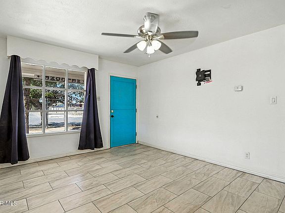 Cute three bedroom, one full bathroom, single-level home in Northeast El Paso. Enter into a spacious living room. Kitchen includes appliances and a small breakfast nook. Walk out into a large sunroom right off the kitchen for some morning coffee. Evaporative cooling. Security gate on front door. Beautiful flooring throughout, no carpet. Landscaped front & gated all around the perimeter, and large backyard. No garage but does have a large covered carport. Close to shopping, schools, and Ft. Bliss. Pet friendly (limit 2), breed restrictions apply. **Listing may be subject to errors, omissions or changes without notice. All information has been supplied to Broker by another party and Broker has no reason to believe it to be false. All are instructed to verify all information independently prior to taking any action.**