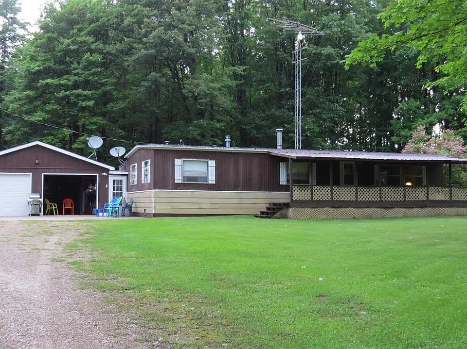 Three bedroom, 1152 sq ft., manufactured home situated on a beautiful wooded 10 acre parcel just minutes from Gladstone. Home has main floor laundry and new septic system. There is a 2 car attached garage with 24x28 attached covered wood shed. The home is mainly heated with a wood burning system that is located in the 13x7 entryway. Additional storage shed included.