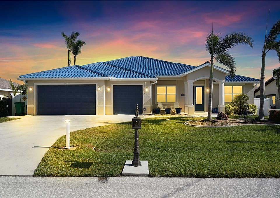 **$50K UNDER RECENT BANK APPRAISAL** ONLY MINUTES TO OPEN WATER** Elegantly appointed custom built 3 bedroom, 2.5 bath with a separate office and three car garage that has everything you’re looking for in your Florida home. Located in the popular Gulf Cove community and built in 2015, you’ll appreciate all the thoughtful details that went into this home such as the eyebrow arch door casings throughout, plantation shutters, and premium ceiling fans and lighting fixtures. From the porch pass though your glass paned front door and into your large open living room with high ceilings and natural slate look and durable 20 inch porcelain tile floors that’s carried throughout the home. The spacious dining room with tray ceiling and chef kitchen with island, 42 inch upper cabinets, and quartz countertops is perfect for entertaining. Working from home will be a delight in your flex room that was converted into a private office with glass doors to provide privacy when needed. Retreat to your master suite with his and her walk in closets and master bath with dual vanities, roman shower with a built in bench and water closet. The split bedrooms affords your guests plenty of privacy and everyone will enjoy relaxing out on the extended lanai where you can soak in the Florida sun. Pride of ownership and all the thoughtful details of making a house a home are apparent with a 3rd garage which was enclosed and air conditioned to make a dream workshop or ‘man-cave’ with television and the chef in the family will be certain to appreciate the spacious walk in pantry off the kitchen. Custom shelving was installed in the closets and the garage provides ample storage for all your holiday décor and recreational equipment on the overhead shelving and additional storage for your lawn equipment in the outdoor sheds. The home stood strong through the recent hurricane which it benefited from the accordion and roll down shutters and the impact resistant EKOROOF tile roof made of renewable materials and the company backs with a 50 year warranty. When you aren’t enjoying the finer touches in this home that were inspired by the calming beautiful waters of Florida, stroll down your private path and hop on your boat that awaits you on the 10,000 lb boatlift and head out on the open waters. No long canal system or extended waits for your turn at a lock, just a short ride down the canal to the open waters of the Myakka River and Charlotte Harbor. If you enjoy being outdoors, you'll appreciate all the recreational activities in the Gulf Cove community. Launch your jet skis from the private community ramp that costs only $65 a year to use where you can head south to the Gulf of Mexico or boat north where you can camp along the shores of the Myakka River. The western perimeter of the community borders the Myakka State Forest with over 30 miles of trails for hiking or riding bikes. The community has an OPTIONAL POA to join for $65 a year to access a community park located along the shores of the Myakka River. Closely located to area shops & restaurants, world class fishing, & close proximity to the beaches of Boca Grande & Manasota Key, this home & the area is a sportsman's paradise! Schedule your own private showing today.