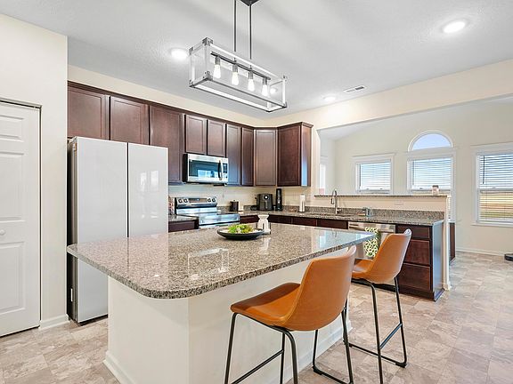 This home is in the highly sought after River Bend neighborhood. It has 4 bedrooms, 2.5 baths, and 2 car garage.They added a lot of upgrades to this home- light fixtures, the bonus sun room space and the counter tops. The sprawling great room opens to a large kitchen with upgraded countertops, a spacious kitchen island and upgraded light fixtures. The sunroom is an upgrade to the model home and adds extended counter space while allowing cheerful natural lighting into your home. A convenient 2nd floor laundry awaits, while your spacious en suite master bedroom, complete with walk-in closet, provides a retreat from a busy day. Each bedroom is a generous size with lots of closet space. Everything is basically new- just move in!