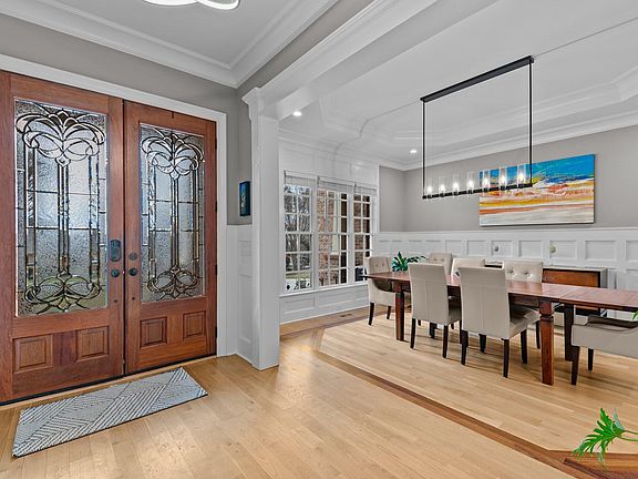 If you're seeking a one of a kind, impeccably maintained, high end home, look no further! Experience modern luxury in this perfectly situated home in a prime North West Raleigh location. The interior of this 5 bedroom, 3 full, 2 half bath home boosts high end finishes, an open concept layout and an abundance of natural light throughout. The home has so many updates that are sure to make this almost 5000 sq. ft beauty standout. (Full upgrade sheet in MLS docs) You are greeted by beautiful matte, newly finished ''White Oak'' hardwood floors, staircase and matching banisters that create a seamless and cohesive design throughout. The 10-foot ceilings, thick moldings & tall doors on the main floor add to the overall impressive feel of this home. The chef's kitchen has been equipped with top-of-the-line appliances and custom cabinetry. Enjoy pristine quartz countertops, subway tile backsplash, custom downdraft, a Thermador 6 burner gas range, Kitchen Aid double wall oven with convection & Bosch dishwasher. You have plenty of storage options with the walk-in pantry, floating shelves and built-in wall cabinet area. The family room is large and offers a gas fireplace, coffered ceiling and a picturesque view of the beautiful backyard. The formal dining room accommodates a large table and also has a custom sink & butler's pantry with a wine refrigerator. The private study at the front of the home has a lovely, vaulted ceiling. The owner's suite on the main floor has a trey ceiling, ''park-like'' view of the backyard and access to the back deck. Ensuite bathroom has double sinks, whirlpool tub and walk in shower with glass enclosure. The owner's closet offers an abundance of storage and custom shelving options. Upstairs you will find an additional 4 large bedrooms. All bedrooms offer amazing walk-in closets. One bedroom has its own ensuite bathroom with a tub/tile shower combination, tile floors & and vanity with granite top. The 3rd bedroom is currently being used as a ''bonus room'' space and has a cedar lined walk in closet. The 4th & 5th bedrooms share a ''bathroom'' with a shower but have separate vanity areas. There is also a huge bonus room on this floor that's perfect for entertaining, watching sports or playing games! This area has its own half bath & a mini ''kitchenette'' with sink and mini fridge. You will love the large, finished storage closet in this room plus the large unfinished walk in storage. The 3rd floor flex space receives the most amazing natural light & is currently being used as an office, den and gym area. This area also has walk- in unfinished storage. This home has newer carpet throughout, all trim and the majority of the interior was recently painted. The 3-car garage has an amazing storage alcove, work bench area and the 3rd stall is currently being used as a gym space. Home has an abundance of storage throughout! Outside, entertain on the fablous screen porch & huge deck space all equipped w/Trex decking. Relax around the firepit in the almost half acre peaceful, wooded lot. Home was originally built by an employee of Duke Energy, so it features amazing ''green features'' such as insulated walls & ceilings from the crawlspace all the way up to the 3rd floor & also has a conditioned crawlspace. This home has been meticulously maintained: new roof in 2022 and 2 of the 3 HVAC's are newer and home has been consistently on service contracts with all home maintenance providers. Home has a tankless hot water heater, irrigation system & ''smart'' light fixtures by Lutron. Home is located within minutes to shopping, dining, parks, greenway access, Interstate 540, RDU Airport and RTP. You won't find a better home that's both elegant and inviting!