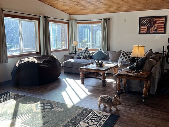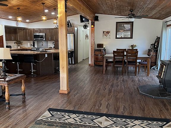 Rare opportunity for multi-generational living and/or income property. This 3.6 acres nestled along the banks of Mill Creek has two manufactured homes & two shop buildings. The main home is a 1973 4 bdrm/2ba manufactured home with additions, including a magnificent great room and kitchen addition featuring wood beams and a vaulted ceiling, complimented by large windows, wrap-around deck and stamped concrete patio. The kitchen is updated with new cabinets, wood counter tops, a grand island with seating, & is equipped with stainless steel smart appliances. Large walk-in pantry room off the kitchen also has an under-floor dry storage space. The home is heated with a wood stove, window a/c used when needed. The park-like yard, with its majestic Pine and Oak trees & established flower beds along the bank of the rustling Mill Creek is a great space for outdoor entertaining. The 2nd home is a 1974 manufactured home on a full basement. The home (upper unit) and basement (lower unit) are each rented separately. Each unit is 2 bedrooms/2ba. Domestic water for all units is from a private well. The current owners also have access to irrigation water from a neighboring well, plus spring water that feeds the pond. The largest shop is 35ft x 40ft w/two 12ft roll up doors. It is insulated & has a concrete floor. Also has plumbing for a future bathroom and a potential office space built on the side. The smaller shop/garage is a 24ft x 50ft block building w/a large covered parking space/work area in front. Both shops have 220 power. Parking space is abundant so if you need space for large trucks or recreational vehicles, this property has it. Financing options are limited due to age of homes. Do not enter the property without an appointment.