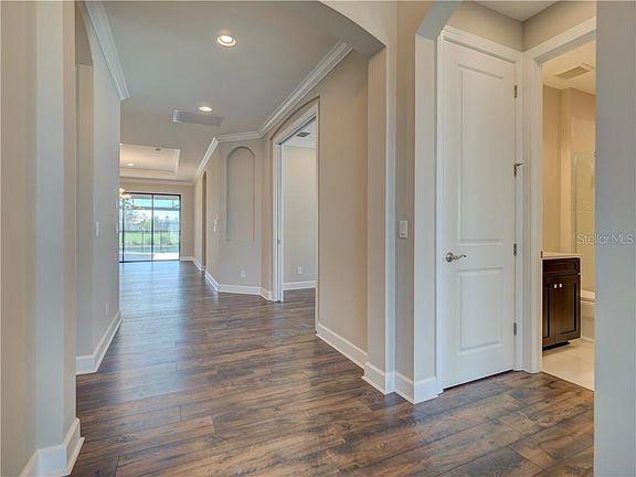 Under Construction. RESORT STYLE LIVING at its best! Nearly 7000 sq ft club house featuring 24 hour fitness center, billiard/card room, club/craft room, and a common room, movement studio, treatment room, indoor and outdoor kitchens. The Club House is situated on nearly 6 acres of property and offers a resort-style pool, resistance pool, hot tub, dog park, fire pit, formal events lawn, and sport courts. An on-site Lifestyle Director will be on hand to interact with residents and coordinate special activities, parties and events. This homesite offers a private preserve back yard view. The designer kitchen includes a quartz countertops, white maple cabinets with crown molding and stainless steel slide in gas stove with microwave vented to the outside. There is wood look laminate flooring in all the main living areas. You will enjoy the private view from the very spacious lanai that is pre-plumbed for an outdoor kitchen. The master suite features double walk-in closets and the master bath offers dual sinks and large shower. This home also includes a den with French doors, 8ft doors throughout the entire home and much more. PHOTOS TO DEMONSTRATE FLOOR PLAN. HOME READY IN JAN 2021