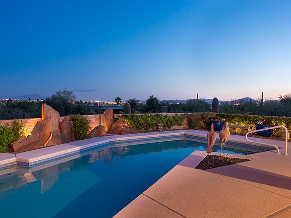 For more information on this property, contact the Listing Agent, Peter DeLuca at (520) 977-4770 or PeterDeLuca@realtytucson.com. Come enjoy the Stunning city & mtn views from this gorgeous SW territorial home on a quiet cul-de-sac lot. Enter thru the delightful front courtyard w/both covered & uncovered seating areas to soak in the Catalina Mtn views. In the bkyd, the sparkling pool, awesome city views, long covered patio & outdoor kitchen are the main focal points. Inside this beautifully cared for and updated home you will find an open kitchen w/lg granite topped island, Bosch appl, lovely ceramic tile & fabulous wood parquet flrs. The fam rm has a beamed ceiling & huge gas FP. Also featured are the remodeled master bath and hall bath w/Jacuzzi tub, wet bar w/granite counter, rolling shutters on all windows and patio doors and the sense you are at home from the moment you arrive. Just 15 min to UA & downtown.