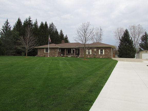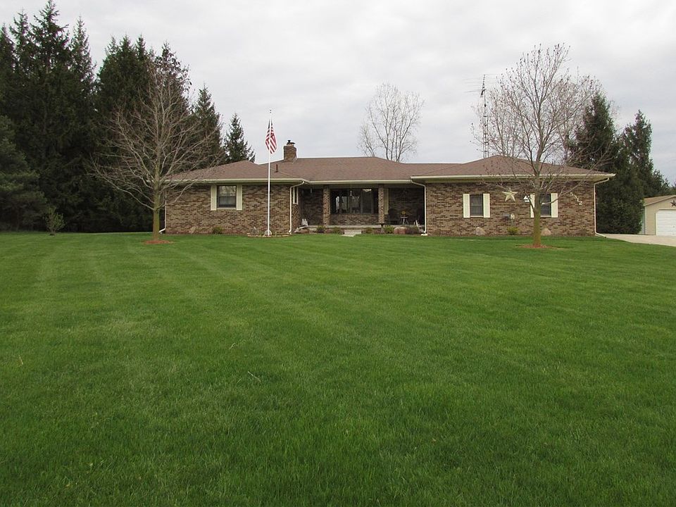 Beautiful ALL Brick Custom Built Ranch with many updates on 5 Acres! Includes a Full House Generator, Granite Counter Tops, Hickory Flooring in Livingroom, Diningroom, and Hallway, First Floor Laundry with Stack able Washer and Dryer, Custom Bali Blinds in the Livingroom. Outside features includes an Above Ground Pool with Deck, Second Garage 18x24, Hunting Blinds, Paved Driveway 2017 leading to the 29x29 Attached Garage.