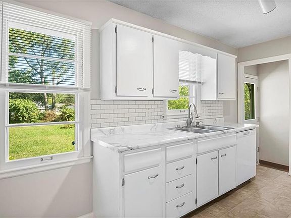 Carpet free ranch includes beautiful wood floors and updated tiled baths. The fenced backyard is spacious enough to add a pool & storage shed. Bonus room in the basement w/adjoining half bath. Easy access to highways and only 1/3 mile away from Searcy Creek Parkway Trail head. All kitchen appliances included. Google Fiber installed. Part of the garage was used to finish the dining area garage measures approx 14 x 13