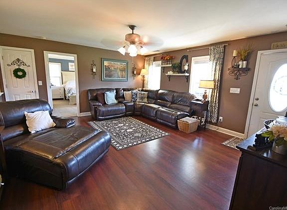 Charming transitional ranch home on 1+ acre private lot in Hampton Meadows Subdivision, Monroe, NC! Rocking chair covered front porch! Open floor plan, split bedroom plan, 1316 SF home! 3 bedrooms/2 baths! Kitchen has electric cooktop & granite counter tops! Tray ceiling! Arched doorway! Neutral paints! Crown molding, chair rail! Master has garden tub, granite counter, double vanities & walk-in closet! Guest Bath has granite! 144' wooden Deck! Shed! Home is located in USDA eligible area!