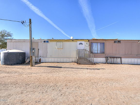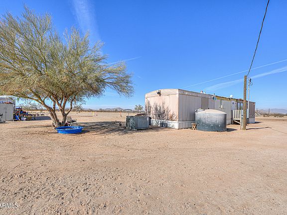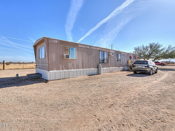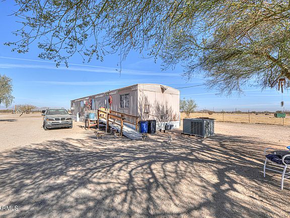 OASIS IN THE DESERT! This cute and cozy manufactured home boasts 2 bedrooms, 2 baths & kitchen with overlooking the great room! Upgrades include wood laminate & tile flooring throughout & faux stone accents! Fully fenced & sitting on 3.3 level acres surrounded by natural desert landscaping and STUNNING mountain views! Horse setup already in place with covered stalls, turn outs & round pen! Located in Hidden Valley Estates just off paved roads with no HOA, plenty of room for horses & toys and conveniently located between Maricopa & Casa Grande! With septic, propane and electric in place this is the perfect lot to develop your dream home! Truly a must see!