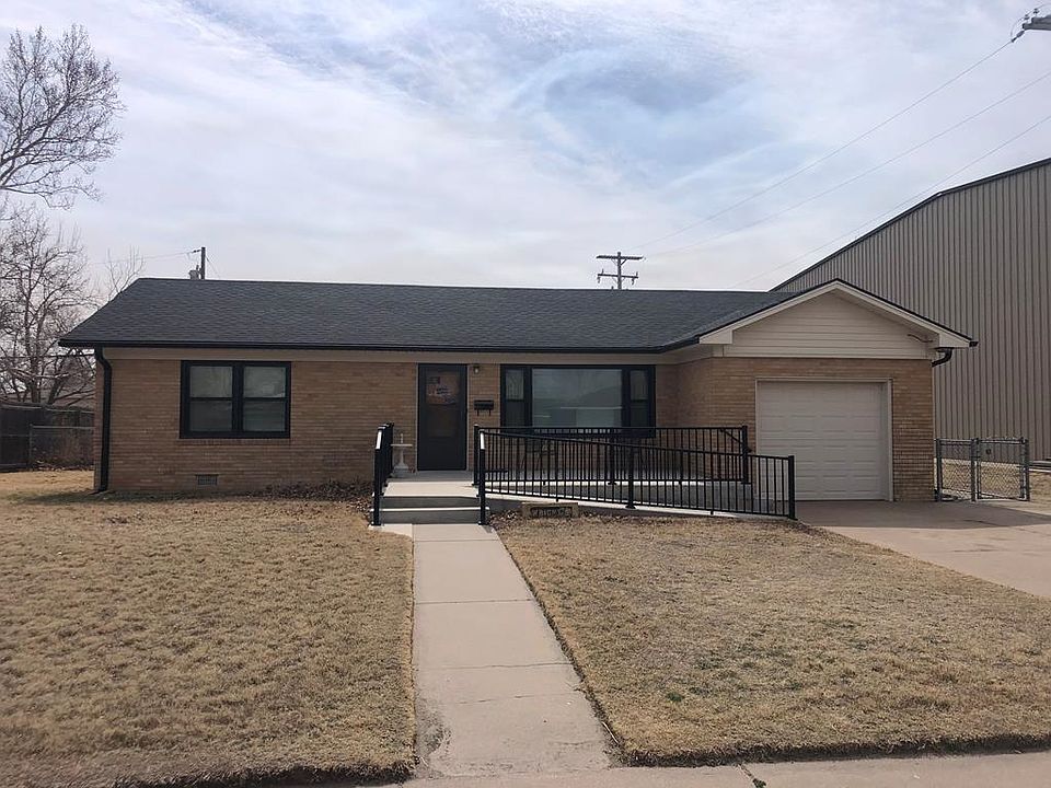 Handicapped accessible home complete with updated front porch with concrete ramp, wide doors, and handicapped accessible bathroom. Home features a living room, 2 bedrooms, 3/4 bath, kitchen with eating area, utility room, enclosed patio, and fenced backyard...