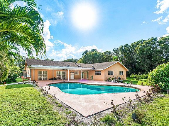 Ready to experience country living without leaving the city? Welcome to your new home! 50% owner financing options available. Nestled on over 3.5 acres of land, this property features a main house with 4 bedrooms and 2 bathrooms, an oversized 2-car garage, and a charming 2-bedroom, 1-bathroom guest house with its own 1.5-car garage. This one-of-a-kind property allows you to embrace an agricultural lifestyle while still enjoying all the conveniences of city living. The main house offers a thoughtfully designed split floor plan, with 3 spacious guest bedrooms and a large primary suite complete with a massive walk-in closet, dual vanities, and a spa like walk-in shower. Neutral beige tile throughout the home. The generous kitchen boasts real wood cabinetry, stainless appliances and a ton of storage and counter space. outside to your private backyard, where you'll find a 15x37 covered patio ideal for entertaining, along with a freeform in-ground pool. The guest bathroom is also a cabana bathroom. The guest house has been recently updated and features 2 large bedrooms, a full kitchen, bathroom, and a separate entrance, complete with its own driveway and 1.5 car garage, perfect for multigenerational living or hosting visitors.