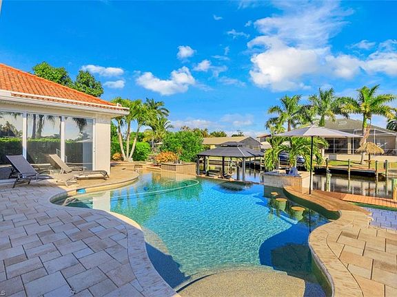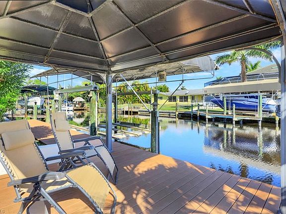 Feast your eyes on this incredible DIRECT ACCESS home located in the Cape Coral Yacht Club area. Take advantage of the best both land and water have to offer as this home is a few minute drive from some of Cape Coral's best shopping, dining and entertainment as well as a few minute boat ride to open water. NO BRIDGE ACCESS! This home offers nearly 2,700 square feet, 3 beds + Den, 2 1/2 baths, 3 car garage and is loaded with upgrades both inside and out. IMPACT RESISTANT WINDOWS AND SLIDERS!! The backyard is a waterfront oasis. Paver deck surrounds the infinity edge pool loaded with upgrades including sun shelf, solar AND electric heat, integrated spa and a combo swim up/walk up bar with umbrella shade. Composite deck dock provides tons of sitting area both in the sun and under a gazebo. Boat lift is canopy covered. Pool bath is located off back of home for convenience. Kitchen features 42" upper cabinets with crown molding, stainless steel appliances, granite counter tops, separate island, under cabinet lighting and a great view of the pool/water. This entire home is stays bright through natural light alone. Too many features to list. Take advantage of this home before it's gone!