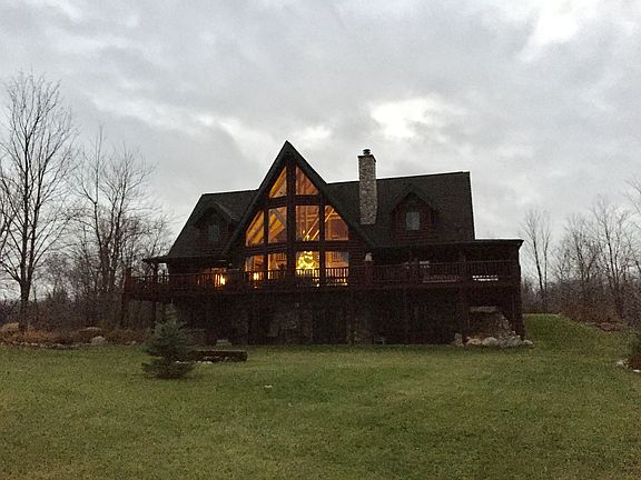 Featuring the perfect combination of log cabin elegance and state park beauty, this 17 acre property offers 5 bedrooms, 3 1/2 baths, and partially finished walkout basement. The layout includes a master bedroom with an on suite, two additional bedrooms, and laundry on the second floor. The partially finished walkout includes two bedrooms, full bath and living room. This area also offers ample storage and craft space. Nestled in the Ortonville State Recreation area an adjacent to over 1,500 acres of recreational ground, the home is ideally situated on the property, where expansive outdoor living areas give way to breathtaking views of colorful flower gardens, a 1 acre pond and abundant wildlife. The attached 3 car garage is complimented by a 40 x 60 x 14 pole building complete with concrete floor, 220V service, a finished 16 x 20 room and 16 x 40 loft. A loop drive accommodates trailers of any size for ease in loading and unloading The pole barn is equipped for the electrified fencing which has been used for pasturing horses in the past. The house also has a whole house generator. Seller willing to honor 3% commission paid to buyers agent. Call 419-296-3126