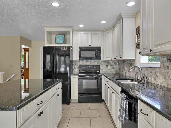 This home is simply gorgeous and very, meticulously maintained! The newer luxury kitchen features beautiful cream cabinetry, complemented by crown molding & dark granite countertops. Center island offers additional storage & a breakfast bar! Light & bright breakfast room w/french doors lead to the maintenance free deck, overlooking the large back yard. New vinyl and chain link fenced yard. If you're looking for an open floor plan perfect for entertaining-this is it! The great room features cathedral ceilings, lots of natural light & a beautiful brick fireplace w/ a crisp, white mantel. Main floor owners suite offers dual closets, a roomy bathroom complete w/ deep soaking tub, separate shower & dual vanities. The finished, walk out lower level could be another home altogether...perfect for an inlaw's quarters. Nice sized kitchenette, a wood burning stove, a multi purpose family room, fourth bedroom, craft/toy/storage room & unfinished storage space! The lower level full bathroom has secondary laundry hookups. Welcome Home!