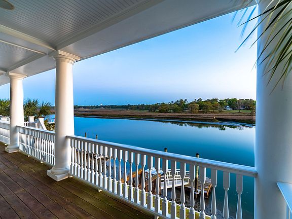 Gorgeous, custom-built raised water-side beach home located on Cherry Grove's main channel, only a few blocks from the Atlantic Ocean. The immaculate exterior features brick paver driveways, stucco and Hardie plank siding, and four spacious balconies all providing stunning water views! The interior features heart pine wide plank flooring, tiled bathrooms, 7” crown molding and baseboards, decorative chair rail with wainscoting, recessed can lighting, and an abundance of natural light throughout the home. Enjoy cooking and hosting in the spacious kitchen, equipped with custom cabinetry, granite countertops, stainless steel appliances including a double oven, separate ice fridge, and a large kitchen island with pendant lighting. Relax in the family room with large windows that let in plenty of natural light and provide you with stunning views of House Creek. The main floor is an open concept layout that leads into the formal dining room located next to the kitchen. For the convenience of you and your guests, four out of the five bedrooms have private en-suites. Enjoy beautiful natural and cultured marble countertops throughout the bathrooms, featuring double vanities in the master and second-floor bathrooms. For your convenience, there is an elevator that runs to the third level. The fifth bedroom is currently used as a bonus room and contains a kitchenette. When nights turn cool use either one of your two propane fireplaces either in the family room or the master bedroom. Enjoy the ease of a left-facing tandem garage that opens in the front and rear of the home. Take advantage of the outdoors with a private boat dock featuring a jet ski ramp for endless summer fun! House Creek inlet leads directly into the Atlantic Ocean. The outside patio area also includes a private outdoor shower and a fish cleaning station. * The main channel in Cherry Grove is not subject to dredging expenses. * You will find an abundance of storage on the ground floor in the oversized garage along with a workshop. Heritage shores is a beautiful neighborhood that has no homeowner’s association fees and also is the home to a nature preserve. Heritage Shores Nature Preserve offers over 7+ acres of walking trails overlooking the beautiful scenery in Cherry Grove. 53rd Ave N also offers a public boat landing. Call your Realtor to schedule your showing today, must be qualified for an appointment. 3-D tour, video tour, and drone video available. Youtube: https://www.youtube.com/watch?v=gw5HieHpEIk&t=2s