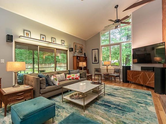 Wow! Check out this fabulous Mid-Century home! From the moment you enter the home, you will feel transported back in time. The home has been lovely renovated, while keeping the authentic Mid-Century vibe. The wide foyer invites you into the main level with a den that opens to a side porch and there is a bedroom/office and a full bath. The great room offers vaulted ceilings, exposed beams, beautiful windows, brick accent wall with wood stove and sliding doors open to the screened porch. The kitchen has been updated with tile flooring, granite tops, and offers a larger dining area that leads to the screened porch. Primary bath has been renovated with curb-less walk-in shower and heated tile floor. Bamboo flooring on main living areas. Basement with plenty of storage and tankless water heater. Partially fenced in yard and plenty of space for a garden. Great opportunity to own a true Mid-Century gem!