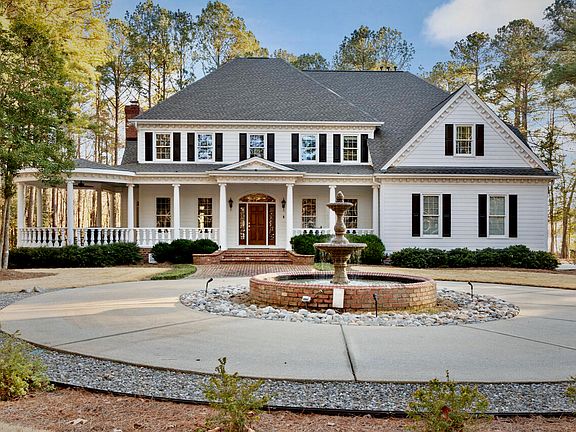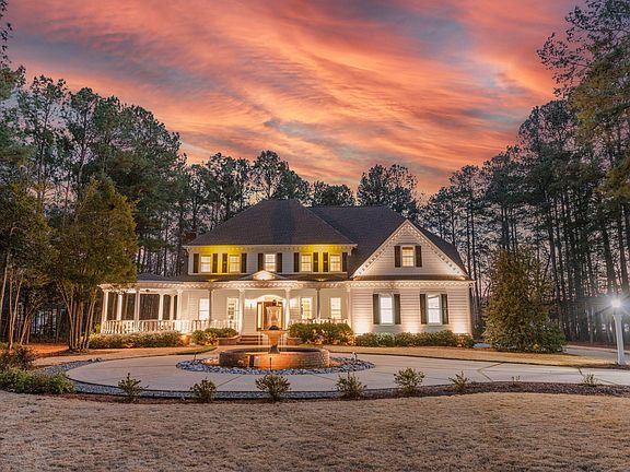 Discover the pinnacle of lakefront living in the esteemed Sunset Lake community of Holly Springs. This stately residence, set on a sprawling 1.18-acre flat lot at the end of a tranquil cul-de-sac, embodies elegance and serenity with its breathtaking lakefront vistas. From the moment you arrive, be captivated by the grandeur of a circular driveway and an impressive water fountain, inviting an atmosphere of sophistication and grace. The expansive front porch and inviting veranda offer serene spots to unwind and soak in the panoramic lake views, providing a seamless blend of indoor and outdoor living. Spanning 4,454 square feet, the interior is meticulously designed to highlight the natural beauty outside, featuring large windows that frame the lake views. Elegant finishes throughout the home underscore a lifestyle of refined comfort and luxury. The first-floor primary suite serves as a private retreat, complete with a fully remodeled bathroom that affords a spa-like experience, ensuring relaxation and tranquility at day's end. The home's thoughtful design also includes a three-car garage, offering ample space for vehicles and a golf cart, with a butler's pantry crafted into the third bay for added convenience—a testament to the home's blend of functionality and luxury. Pride of ownership is evident in every detail, from the meticulous maintenance to the careful selection of finishes that enhance the home's charm and character. This property not only offers an exclusive lakefront lifestyle but also stands as a celebration of the harmonious integration of luxury living with the natural environment. If you've envisioned a life of unparalleled elegance and serene waterfront serenity, this distinguished residence in Sunset Lake marks the culmination of your search. Experience the ultimate in luxury and nature's splendor, all within the vibrant community of Holly Springs. Current owner never lived in the house. Can not move in as their life circumstances have changed. According to previous owner, roof was replaced in 2022, crawlspace was encapsulated 2023, exterior paint 5/22, garage doors and motor replaced in 2022, living room fireplace 2020, Tile backsplash and new kitchen counters in 2020. Do not have all records. Seller has never used the intercom or central vac systems - to be sold ''as is;''. Flood insurance is $1,050 per year.