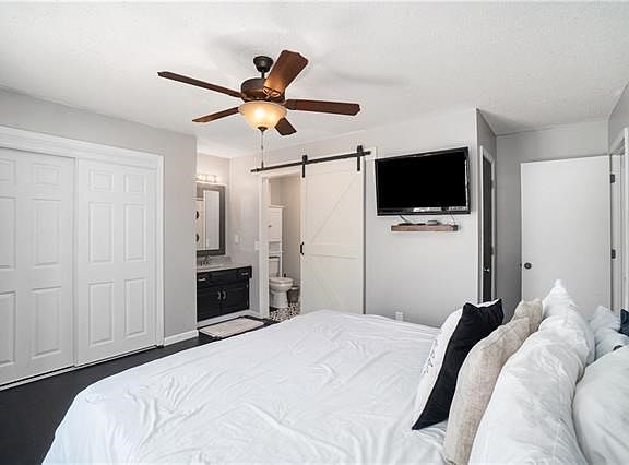 Gorgeous tri-level with a great location! Greeted by tall ceilings & fresh interior paint, enjoy the long list of upgrades this home has to offer! An updated kitchen complete with painted cabinetry, granite countertops & stainless steel appliances opens into the home's large living room. With its newly painted fireplace, large windows & hardwood floors the space is cozy & inviting all in one. The bedroom level of the house offers a spacious primary en-suite complete with an updated bathroom & private access to one of the home's two decks. Two additional bedrooms & a newly renovated full bath with shower/tub combo leads down to the home's separate laundry area. The walk-out lower level includes a large rec space with epoxy flooring as well as the home's 4th bedroom. Enjoy evenings in your HUGE fenced-in backyard, including private views & shed. This one won't last long!