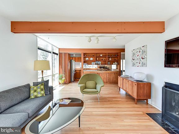 Updated mid-century modern on deep .36 acre lot in Glen Echo Heights. Designed by Cross & Adreon. 5 bd/2.5 bth. 2,242 total sf. Open living-dining-kitchen w/walls of glass. Brand new stainless steel kitchen appliances. Refinished hardwood flrs. Master suite opens to screened porch. High-end master bath w/radiant floor heat. Whitman HS. Transfer rights for Mohican Pool. **Offers due 3 pm 4/23.**