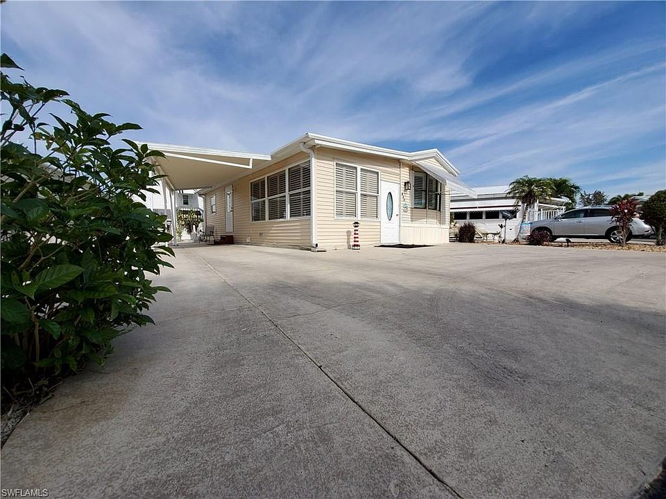CLEAN, CUTE & MOVE-IN READY! Offered furnished. This wonderful Florida get-a-way home located in a gated 55+ community features 2 bedrooms / 2 bathrooms & offers maintenance free & low cost living. The open floor plan provides space for entertaining & relaxation. America Outdoors is a gated community with LOW HOA & you own the land (no land fees), & the community is pet friendly! This home is walking distance to the community pool & recreation center. America Outdoors is located one block from the intersection of Alico Rd. & 41 next to the Publix shopping center.