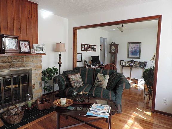 Beautiful brick ranch home on ten private acres. This three bedroom two bath home boasts of gorgeous hardwood floors and a large open floor plan. The kitchen range is less than one year old. The two car attached garage contains a wood furnace that heats the entire home for savings on energy costs. A pond sits within a fenced pasture that would be a great convenience for livestock or horses. The serene backyard is the perfect place to sit back and relax. Two storage buildings and a large barn offer ample storage space. This is the perfect place for privacy and a piece of country living. House is checked for termites annually and the septic is emptied annually as preventive maintenance. Included in the sale is a child's playhouse in the side yard.