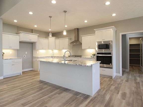 New home by award-winning Spoon Construction. Open floorplan features gourmet kitchen w/custom cabinets, granite c-tops, SS appliances, island w/bar, walk-in pantry. Main floor home office w/barn door. Awesome main floor master suite w/ walk-in tile shower, dbl bowl granite vanities & large walk-in closet. Family room 12' ceilings, contemporary electric fireplace with mantle and shiplap siding & lots of windows. Wifi thermostat, mud/laundry w/sink, & large covered deck. Finished 3 car garage w/keyless entry. Full unfinished Walk-out Bsmt w/ room for future large rec, bedroom, bath, theatre, exercise etc. Basement can be finished for additional $.