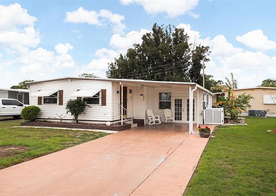 Paradise awaits you at Chateau Village! Chateau Village is a thriving and pristine 55+ community. This professionally renovated home will come fully furnished! The home features a spacious open concept, with 2 bedrooms, 2 bathrooms, a lanai, and a great Florida room that can serve as an office or TV area. The new kitchen with high-end solid wood, cabinets with glass fronts, quartz countertops, GE & Bosch appliances, and a kitchen island with seating is perfect for those who like to cook and entertain. Both bathrooms have been completely remodeled. The owner's bath features an oversized walk-in shower and quartz counters. The separate laundry room with extra storage is ideal for those looking for extra space. Inside the laundry room, you'll find a large craftsman shop equipped with a workbench, storage, and many tools. Chateau Village is a golf cart community. The low HOA/maintenance fee includes lawn maintenance, water, trash, sewer, cable, wifi, clubhouse, heated pool, and shuffleboard is a great value. This home has comfort and convenience at every corner including motorized blinds and a hidden safe. A back property gate offers seamless outdoor access, and a discreet exit to avoid the busy times of 53rd Ave. With this home just minutes from beaches, many golf courses, great restaurants, airports, and shopping, you will surely enjoy the Florida lifestyle.