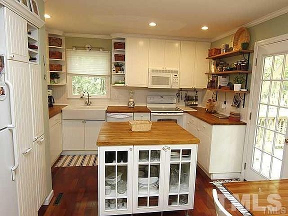 Immaculate and updated with hardwood cherry floors on main, new carpet in all three bedrooms and stairs, freshly painted, master bed on main, light airy kitchen with center island, 2 more bedrooms up, fenced wooded private backyard features 2 level deck great for entertaining, walk in attic storage as well as additional storage room with concrete pad.