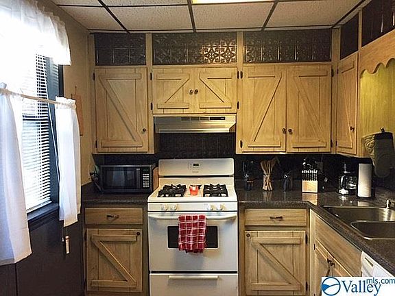 HOKES BLUFF-Charming bungalow, 1.54+/- acres with this 2 Bedroom, 2 bath will kept home with lots of nice updates. 10' ceilings in Living room w/beams, updated kitchen w/custom cabinets and new flooring next to dining room. Spacious bedrooms, updated baths, beautiful tile, covered back deck w/hot tub, TV & fireplace overlooking pool, shop & koi pond. One car attached garage and covered carport. 20x40 garage/workshop. $104,900! Must See to Appreciate! Call today for more information and your personal showing!