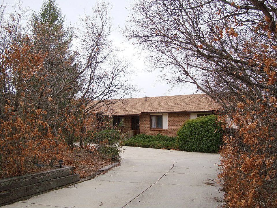 Hidden away behind giant trees on .78 acre cul de sac lot. 3678 sq ft custom rancher offers total privacy w country retreat feeling. Remodeled eat-in kitchen w new raised panel honey oak cabinets w crown molding, self closing drawers, Corian counters, gas cook top, convection oven, microwave, custom hutch w glass front doors, hardwood floors, pendant & canned lighting. Living room features brick faced gas log fireplace, ceiling fan & opens out to covered deck w perfect Pikes Peak view. Large formal dining room. Master bed w walk-in closet & private bath w double sinks & solid surface counter top. 2 add bedrooms, full bath w hardwood floor & laundry room w sink & shelving. BASEMENT: Large family room w gas log fireplace & walkout to huge backyard. 2 add beds (1 w walk-in closet) plus den or office w built-in shelving. bath. Unfin storage area w lots of shelving & full wall of closets. FEATURES: Central air. Security system. Energy efficient furnace & hot water heater. Newer vinyl garden level windows in basement & casement windows on main. 3 storm doors. Newer engineered hardwood floors in entry, kitchen & hallway w 25 yr warranty. Fresh interior paint & new exterior trim paint. Fin 28 ft deep 21/2-car garage w L work shop w shelving, work benches & exterior door. Brick & stucco exterior. Firepit. Fenced 2-tiered back yard w flat lawn areas, garden plots, fruit trees, pines &scrub oak. All app including (washer & dryer), window coverings & shelving to remain w house.