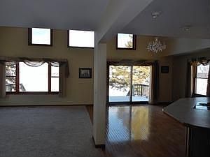 Spacious Chalet, 2 bedrooms 3 bath, master suite with jacuzzi tub, ceramic shower, French doors and open loft area. Master suite on main level with bath and walk in closet. Laundry area with abundance of storage. Open living, dining, and kitchen area with glass door opening to large deck. Full basement with gas wall heater. Three car 30' X 34' attached garage with steps entering storage above. Central air, water softener and sprinkler system.