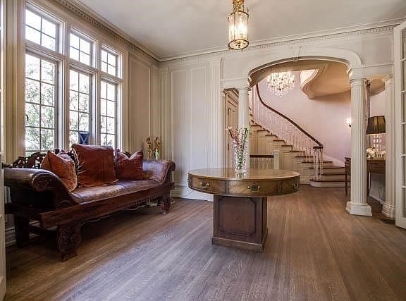 Matching chicken coopQuartzite countersMany steel casement windowsSide loggia patioSoaring ceilingsHandcrafted fireplacesDentate ceiling crown molding