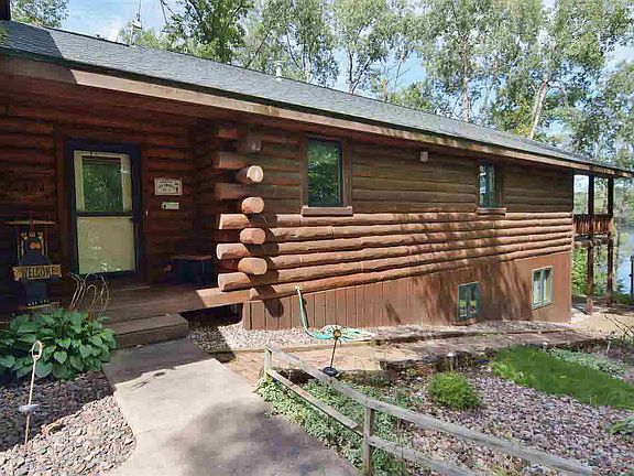 Ultimate privacy with this 1/2 log home on a quiet, clear lake in Washburn County. Heavily wooded setting, 2.130 acres in size with 150 ft of shoreline. Log and pine interior, walls, vaulted beamed ceilings, birch hardwood floors in main level, custom birch cabinetry in kitchen and bath. Formal dining room. Fieldstone fireplace in the living room. Entryway mudroom as you enter through the attached garage. Finished walk out lower level with family room, bedrooms, bath, and utility. Large deck the width of the home with lake view. Higher elevation with steps to sitting deck, then steps to flat area at frontage, plenty of space for dock, storage of boat or canoe. Offered "turn key" most furnishings included in purchase price. Close to other fine lakes, restaurants, golf, and conveniences. On the ATV trail; close to snowmobile trails.