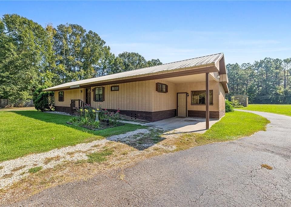 Covered parking areaCovered walkwayBeautiful mature treesMetal roofRecreation room addition
