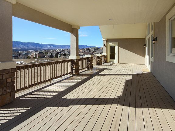 Beautiful home to be built on an amazing property with pikes peak and city views!! This beautiful home offers a cul-de-sac lot, walk-out basement,and 862 sq ft composite covered wrap around deck! This home has an oversized 3 1/2 car garage, gourmet kitchen with granite counters & wood floors, formal dining room with stone pillar accents and vaulted ceiling, and a large family room with vaulted beamed ceiling! The basement includes a large 25x25 family, game room area, and large bedrooms with walk-in closets.