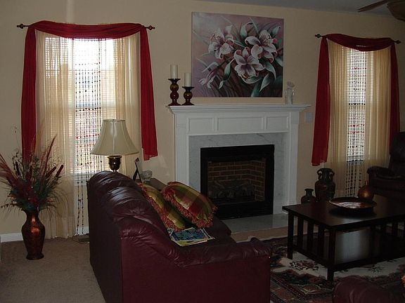 This home offers a paved driveway leading up to your 2 car garage and front sitting porch. Inside the home offers 3 bedrooms 2 1/2 bath with walk in closets in every bedroom and a Jacuzzi tub in the master bath. Living Room has a fireplace with mantle and marble landing. Kitchen has a fridge, range, dishwasher and Microwave There is a separate laundry area with W & D Hookups. Gas Heat, Central AC, well water / septic. Available Mid July