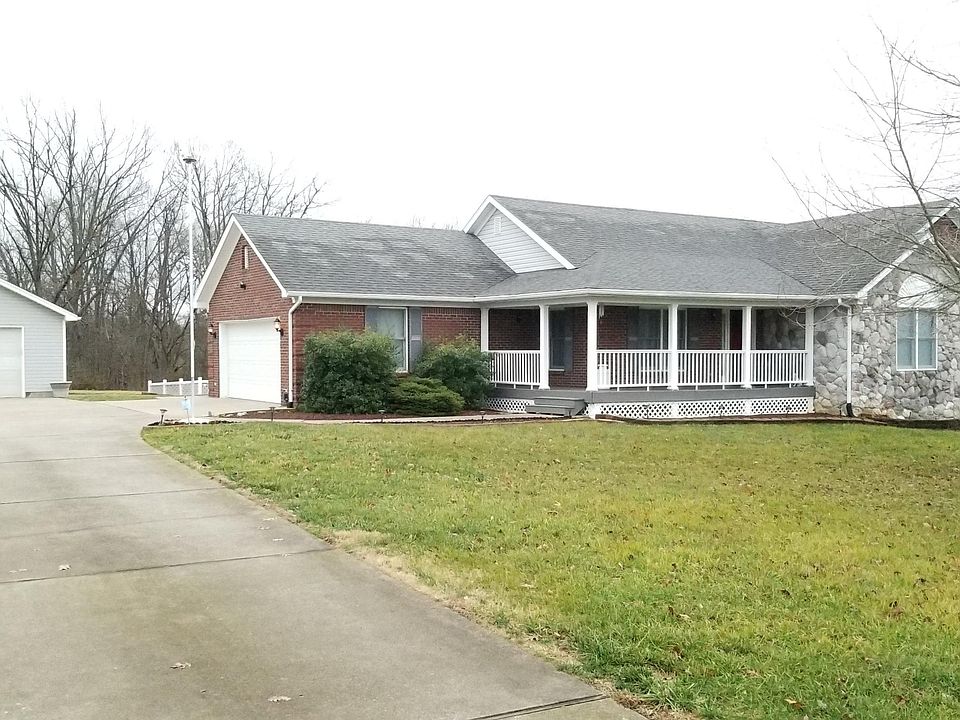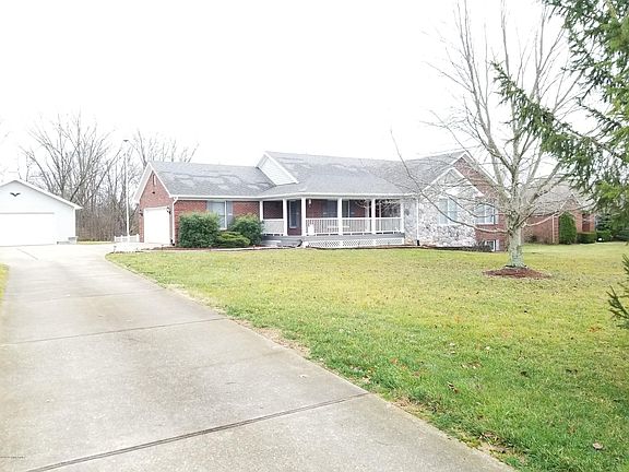 Beautiful Oldham County Ranch ... This Lovely 3 Bed 2 Bath Home has everything you're looking for~ From the moment you pull in the driveway you're drawn to the picturesque front porch, stone accents and 2nd Detached Garage. Upon entering the homes Hardwood Foyer the open Living Room with Stone Fireplace will draw your eye. The Kitchen is traditional, spacious and functional for entertaining with the peninsula counter-top and being located adjacent the Formal Dining Area, and Eat in Space as well. The Homes large Master Bedroom is located just off the living room and has shower, dual vanity sinks as well as walk-in closet. The 2nd and 3rd Bedrooms are both nice and share the Hall with the homes other full bath, if this isn't enough the basement is partially finished.
