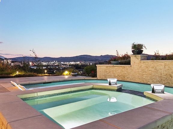 Discover Luxury, Serenity, & Breathtaking Green Valley Views. Perfectly crafted for entertaining, this exceptional home in Eastridge’s exclusive gated community offers a seamless blend of elegance, privacy, & scenic beauty. The bright & airy living room boasts soaring ceilings, dual sets of windows, and a charming wood-burning fireplace. The chef’s kitchen is a culinary masterpiece, featuring ample cabinetry, a pantry closet, & high-end stainless steel appliances, including a six-burner gas stove. Flowing seamlessly into a second living area with a cozy fireplace and direct backyard access, it’s an ideal space for entertaining. The main level also includes two generously sized bedrooms and a large office, offering versatility to suit any lifestyle. Upstairs, the luxurious primary suite serves as a tranquil escape, complete with a private veranda, cozy fireplace, walk-in closet, jacuzzi tub, and separate shower. Enjoy stunning views from the comfort of your bed or balcony. Step outside into your private retreat, featuring a custom pool and spa surrounded by picturesque Green Valley scenery. Expansive entertaining spaces & peaceful ambiance make this backyard truly one of a kind. This move-in-ready home combines comfort, sophistication, and unparalleled views.