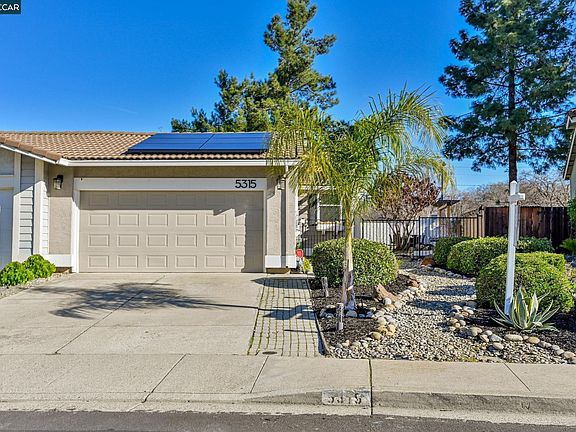 This stunning, single story Pine Hollow duet has it all! This home has been wonderfully updated with a welcoming open concept style. The kitchen has been completely updated with contemporary white cabinetry, quartz countertops, chevron backsplash, a farm house sink, recessed lighting, stainless-steel appliances, a pantry, and a coffee nook. You will be sure to love the large dining area off the kitchen & family room which blend together seamlessly to create an inviting space for family and friends. Both areas boast soaring ceilings, a gas fireplace, an abundance of natural light, and an oversized sliding door that leads to the backyard. The large primary suite is generous in size with vaulted ceilings, custom built-ins for extra storage, and a slider leading to the backyard. The insulated garage is accessed through a covered walkway, has ample storage, and laundry facilities. All of this plus two owned Tesla power walls!! The fully fenced rear and side yard space is perfect for pets, entertaining, relaxing, and/or gardening with many fruit trees, multiple sitting areas, a bbq area, and room for play. All the benefits of a detached home for the price of a duet (No HOA)! Hurry you don’t want to miss this one!
