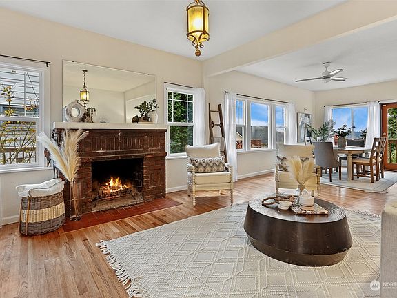 Charming craftsman in idyllic Phinney Ridge location. Minutes from the Zoo, Greenlake, and some of Seattle’s best parks, dining, and coffee. Enjoy the Olympic Mtn views and sunsets from the deck overlooking Ballard & Fisherman’s Terminal. Friendly neighbors, safe, walkable streets + every amenity nearby. The main living space 3-bd/1.5 baths are a perfect layout for privacy, maximizing space, and storage. Enjoy the view from the open kitchen, great for entertaining. Two decks and a level, terraced yard create a summer utopia.  Downstairs enjoys a fully finished basement with 1 bedroom, kitchen, full bath, separate entrance, and patio.